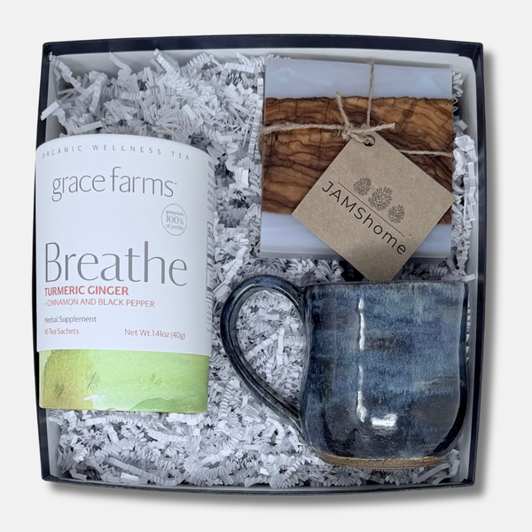 This gift is packaged in our signature 9x9x4 navy blue keepsake box adorned with gold ribbon and a handwritten card on Nutmeg + Honey stationery.
