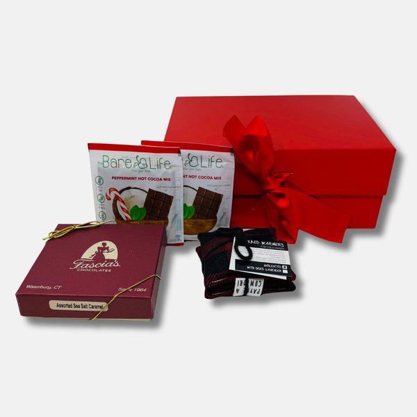 Send a small gift to keep warm this winter. Enjoy sea salt caramels and hot cocoa while you keep your hands toasty in with microwaveable hand warmers.